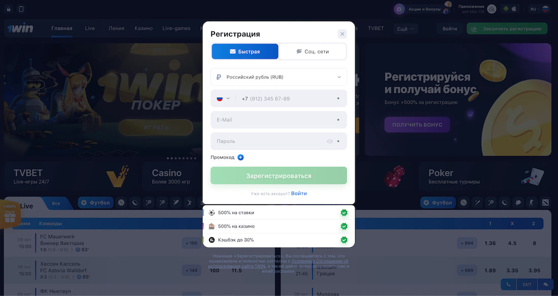 Если у вас есть промокод 1 Вин, его можно ввести на этапе регистрации. Перед завершением процесса необходимо подтвердить согласие с условиями пользовательского соглашения. После выполнения всех шагов учетная запись будет успешно создана.